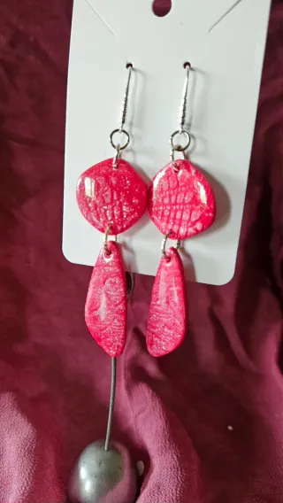 Pendientes largos y llamativos con un diseño texturizado y acabado con resina. Realizados artesanalmente con arcilla polimerica. Son muy ligeros y comodos Si te interesa comprar varios de los q tengo en mi perfil, habla conmigo y arreglamos el precio
