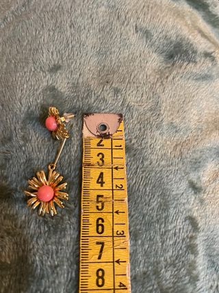 Pendientes largos con un diseño elegante y llamativo. - Detalle de pétalos en tela azul. - Cadena dorada. - Me los he puesto solo una vez , me los compré para un vestido pero no me los he puesto más - si los llevas muchos tiempo dejan la zona un poco azul