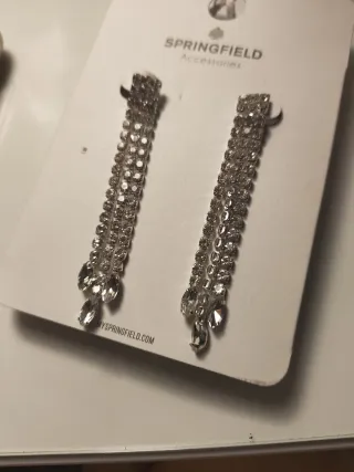Elegante juego de collar y pendientes con incrustaciones brillantes. - Diseño tipo cascada en el collar. - Pendientes largos y colgantes, qué las 3 tiras tienen movimiento🥰Precio real en tienda :19'95€