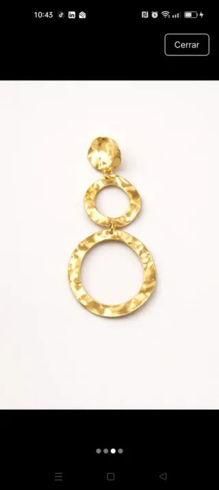 ¿Tu look necesita un toque especial sin complicarte? Estos pendientes dorados iluminan el rostro y transforman cualquier outfit básico en uno elegante y actual. Su diseño ligero y llamativo estiliza y no pasa desapercibido. ✔️ Combinan con todo ✔️ Ideales para eventos y diario ✔️ Diseño exclusivo, pocas unidades Envío rápido. Cuando se agoten, no vuelven 💫