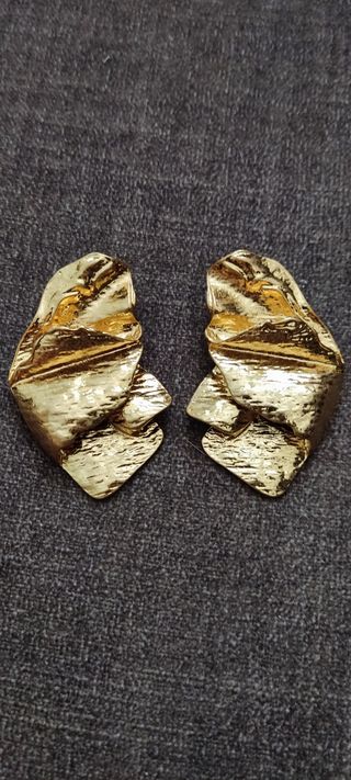 Preciosa pareja de pendientes de color dorado mate. Son de un diseño irregular y con textura arrugada. Ideales para añadir un toque sofisticado a tu look. - Diseño único y elegante. - Acabado mate. - Material resistente. Largo 6.5 cm.