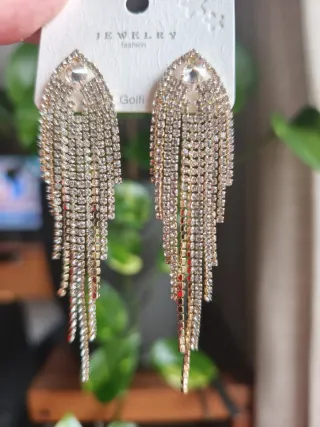 Elegantes pendientes largos con un diseño de cascada de piedras brillantes. Perfectos para añadir un toque de glamour a cualquier ocasión. - Diseño de cascada con múltiples hileras de piedras. - Cierre seguro para mayor comodidad.