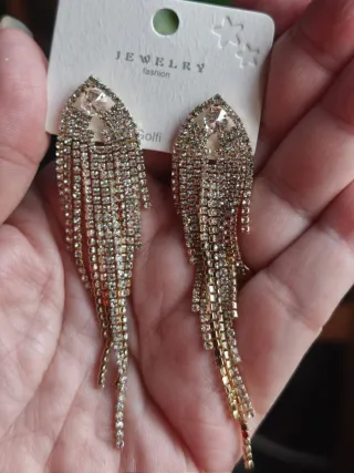 Preciosos pendientes largos vintage, dorados y con brillantes. Medidas: dorado claro 7cm, dorado oscuro 5cm. En buen estado, poco usado.