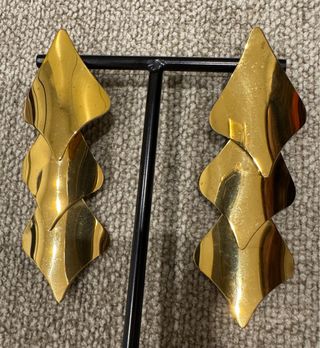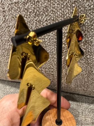 Elegantes pendientes largos con un diseño moderno de la marca imperfections de Anna Parent Ibiza. - Acabado metálico dorado. - Forma alargada y estilizada. Según la descripción cuando los compré son plata bañado en oro. (No viene sello ninguno)
