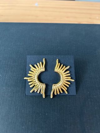 Pendientes de acero inoxidable con un diseño inspirado en el sol. - Material: Acero inoxidable. - Diseño: Forma de sol con rayos. - Acabado: Dorado. - Hipoalergénicos - Larga duración