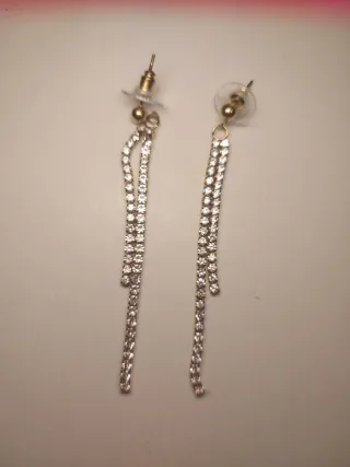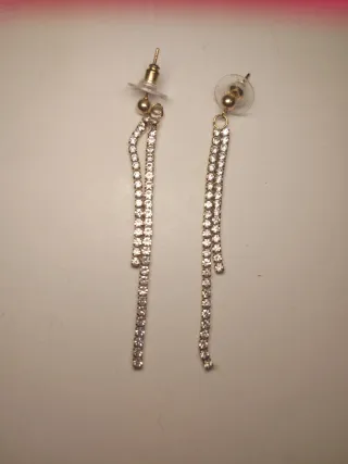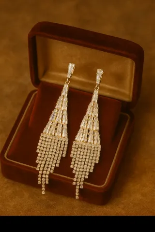 Elegantes pendientes largos con incrustaciones de brillantes, perfectos para ocasiones especiales. - Diseño de cascada con múltiples hileras de pedrería. Dorados - Cierre de presión seguro. - Aportan un toque de glamour a cualquier atuendo.