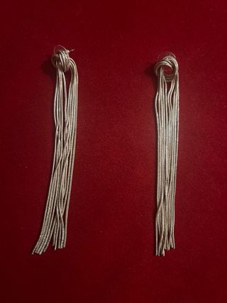 2 Elegantes par de pendientes largos con diseño de borla. - Acabado en tono dorado. - Diseño ondulado y alargado.