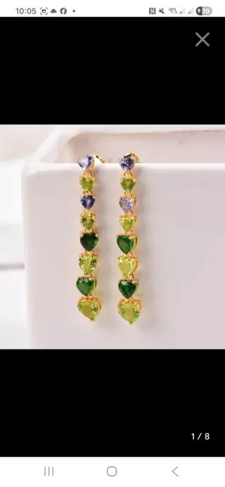 𝔑𝔲𝐅𝐟𝐢𝐥𝐀𝐫𝐭 joyas Pendientes largos en plata de ley 925 con combinación de gemas naturales en tonos verdes y violetas, montados de forma artesanal y acompañados de su certificado ALGT. Pieza fina, vistosa y con un diseño que realza muy bien la caída del pendiente. REFJY3 Nucilar, Arte, Cultura e Inversión Regalo Navidad, Regalo Reyes, Regalo Madre, Regalo Mujer, Novia, Inversión, Plata, Joyas, Pendientes, Artesanía, Joya Certificada pendientes largos con gemas en forma de corazón. Combinan tonos verdes y morados para un diseño llamativo. - Diseño de cascada con múltiples gemas. - Engarce dorado.
