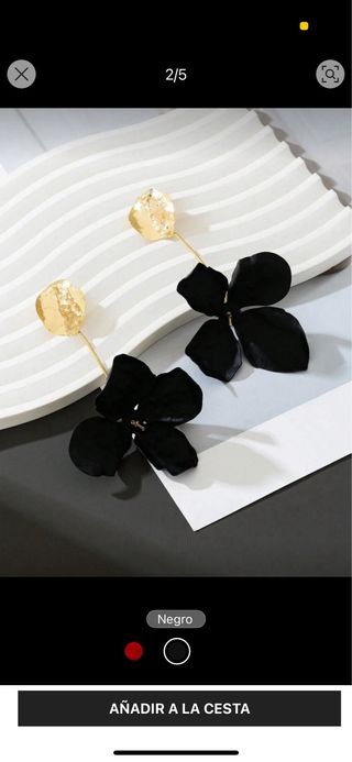 Elegantes pendientes largos con diseño de flor. - Cuelgan de una cadena dorada. - Detalle de flor negra en la parte inferior. - Acabado metálico dorado en la parte superior.