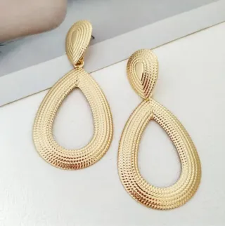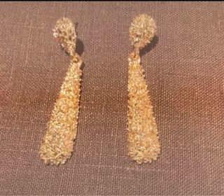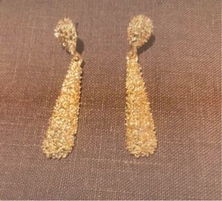 Estoy dispuesta a negociar un precio alto por ellos . Pendientes largos con un diseño elegante. - Acabado dorado. - Diseño ovalado con textura.