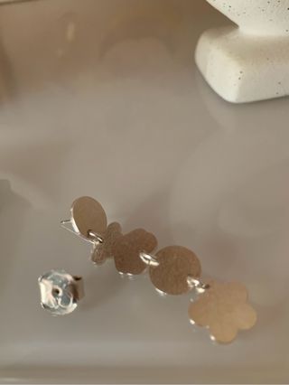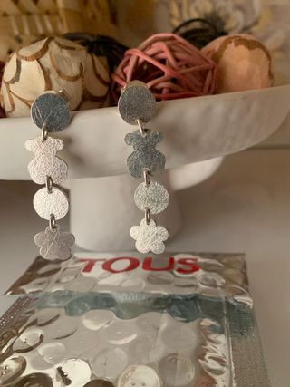 Pendientes de plata de la colección Spirit de Tous, largos, de presión. 4 motivos. Ya descatalogados. Recién pulidos en tienda. Con certificado de Autenticidad. En otro anuncio tengo la pulsera de esta colección. Mira mi perfil. Hago envíos por wallapop Entrego en Puente Alcocer (Villaverde Alto)