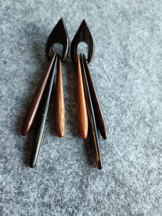Pendientes largos de madera con un diseño único. - Material: Madera. - Estilo: Largo