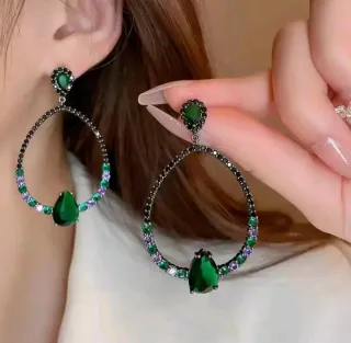 Elegantes pendientes largos con un diseño llamativo. - Detalle de piedras en tonos verdes y morados. - Cierre seguro para llevarlos cómodamente.