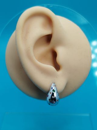 Pendientes Modelo LAGRIMA en plata de ley RODIADA con circonitas de colores Largo 1,5 cm Peso 4 gr Precio no negociable ** NO CHAPADOS ** Productos plata 100% garantizados y con sello grabado 925 mm