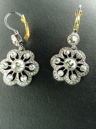 Pendientes plateados, llevan circonitas que le dan mucho brillo. Aproximadamente de largo tienen 4.50 cm