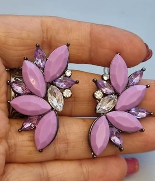 Pendientes flores cristal morado rosa