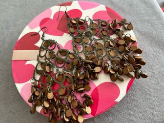 PRECIO NEGOCIABLE. SE ACEPTAN OFERTAS. Pendientes largos con un diseño único. - Combinación de madera y metal. - Cierre de anzuelo.