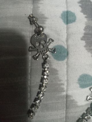 Preciosos pendientes de calavera con brillantes. Son dos pendientes largos con diseño de calavera y cadena de brillantes. - Diseño llamativo y elegante. - Ideales para ocasiones especiales o uso diario. - Se encuentran en buen estado.