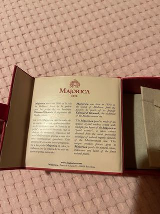 Conjunto de collar y pendientes de la marca Majorica. - Baño de oro de 18 kilates - Plata de ley - En sus cajas originales - Diseño elegante con perlas. - Cierre de collar seguro. - Pendientes a juego.