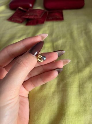 Elegantes pendientes de la marca Majorica con perlas grises y detalles dorados. Nuevo - Diseño clásico y atemporal. - Cierre seguro para mayor comodidad.
