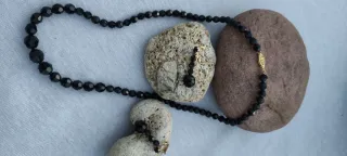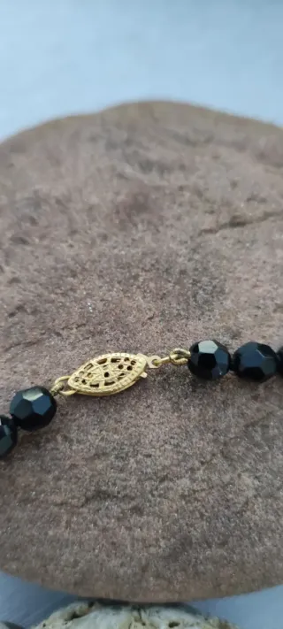 Elegante conjunto de collar y pendientes. Años 80 . 25 cm. Abrochado - Diseño con cuentas facetadas. - Cierre de collar dorado.