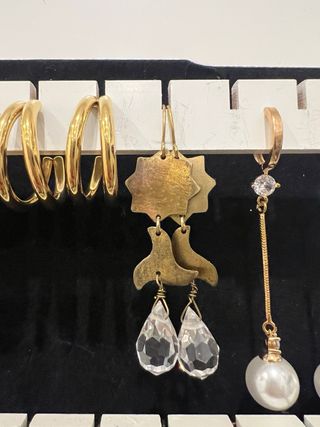 pendientes de aro y/o pendientes dorados con estrella y lagrima.