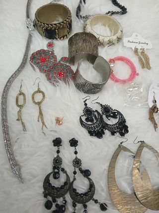 Conjunto de bisutería variada con diferentes estilos y diseños. Pulseras, collares y pendientes. Diferentes marcas como Mango o Parfois y otros sin marca. PRECIO NO NEGOCIABLE