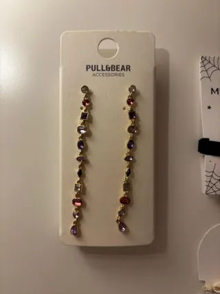 Elegantes pendientes largos de la marca Mango. Cuentan con un diseño llamativo y sofisticado. - Cierre de presión. - Detalle de cuentas y cristales. - Estilo colgante.