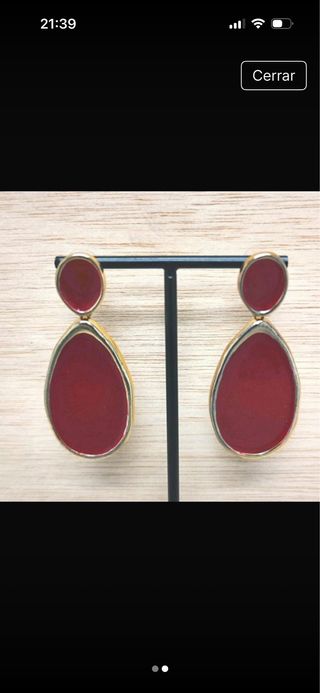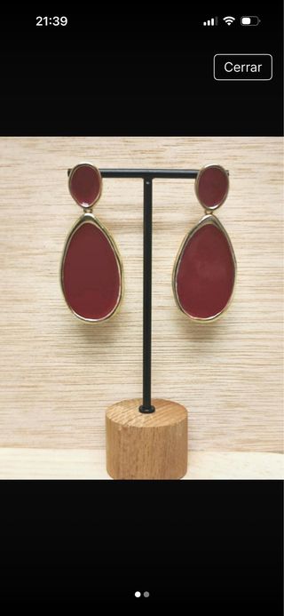 Elegantes pendientes con diseño de gota. - Acabado en dorado. - Detalle en color burdeos
