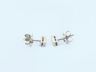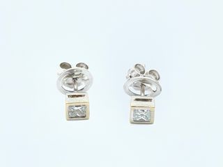Elegantes pendientes de oro blanco de 18 quilates con un diamante talla princesa. - Diseño moderno y sofisticado. - Cierre de presión seguro. Venta en persona en nuestra tienda, precio no negociable. No envíos web. Ref 571816