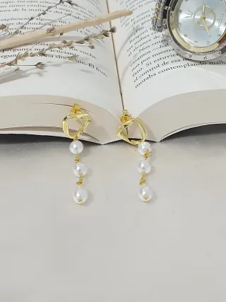 Elegantes pendientes bañados en oro con un diseño delicado de perlas. - Baño de oro de 18 quilates. - Detalle de pequeñas perlas blancas.