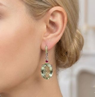Elegantes pendientes largos elaborados en oro blanco de 14 quilates, con un diseño sofisticado y atemporal que realza la luz y el movimiento. Incorporan 4 amatistas verdes naturales de talla redonda, con un peso total de 13,01 quilates. Cada piedra mide 10 × 10 mm, ofreciendo una presencia notable y un brillo suave y refinado, ideal tanto para ocasiones especiales como para elevar un look elegante. 🔹 Material: Oro blanco 14K 🔹 Piedras: Amatista verde natural 🔹 Talla: Redonda 🔹 Peso total de las piedras: 13,01 ct 🔹 Largo del pendiente: 28 mm 🔹 Cierre: Perno (cómodo y seguro) 🔹 Peso total: 4,02 g 🔹 Estado: Nuevo
