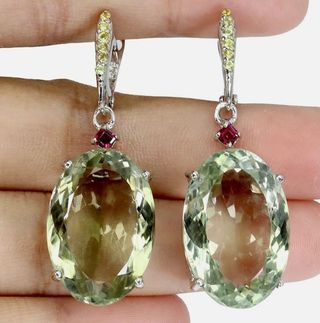 Somos marca de joyas especializada en fusionar plata de ley con piedras preciosas naturales. Todos nuestras joyas son piezas únicas (no fabricadas en masa) y totalmente nuevas. • Material: Plata de Ley 925 • Acabado: Oro Blanco (Rodio) • Gema: Amatista Verde (Prasiolita) • Corte: Oval • Medidas: 20x15 mm. • Color: Verde • Origen: Brasil • Piedra Natal: Febrero • Otras Gemas: Zafiro Amarillo / Granate Rodolita • Tamaño Joya: 40 x 15 mm. ➤ Incluye Certificado de Autenticidad con Holograma ➤ Incluye Librillo Original de la Marca con Texto en 8 Idiomas e Imágenes. Ref. Hadlee
