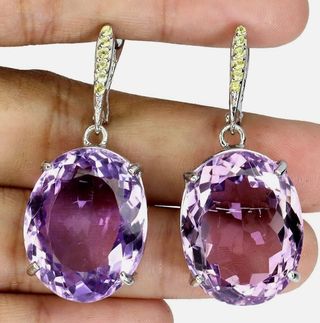 Pendientes Plata Amatista Verde y Zafiro Natural