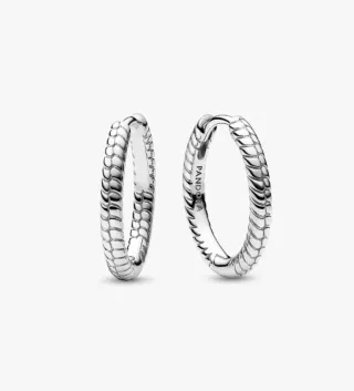 Elegantes pendientes de aro en plata de primera ley con diseño de serpiente de Pandora. Pueden combinarse con un charm. Diámetro de 18mm.