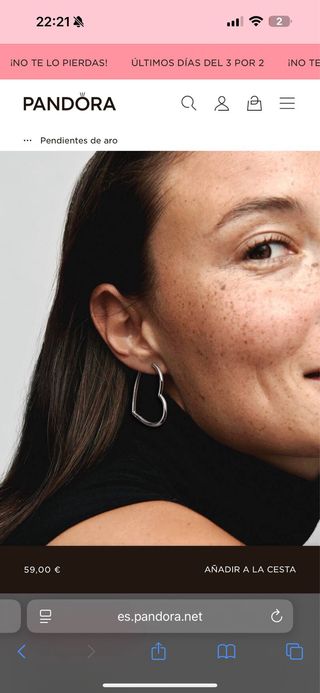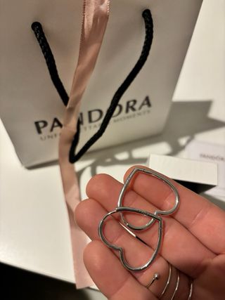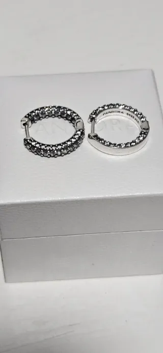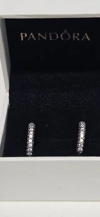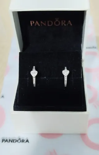 Pendientes de aro de la marca Pandora, con diseño de corazones y pequeñas circonitas nuevos comprados por error. precio del nuevo 89€
