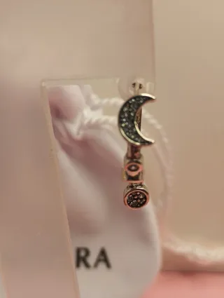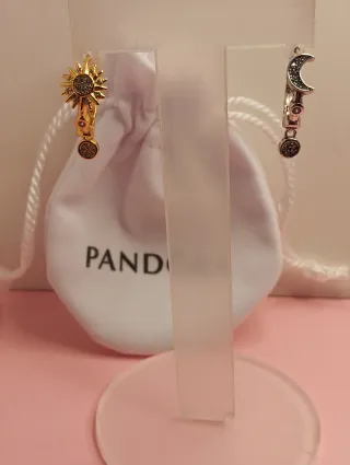 Set de pendientes de la marca Pandora. -Viene con su bolsa original. - Pendiente con diseño de sol y circonitas. - Pendiente con diseño de luna y circonitas.