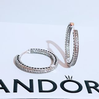 Elegantes pendientes de aro de la marca Pandora, con un diseño delicado y brillante. - Fabricados en plata. - Adornados con circonitas. - Cierre seguro y cómodo.
