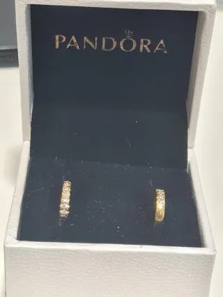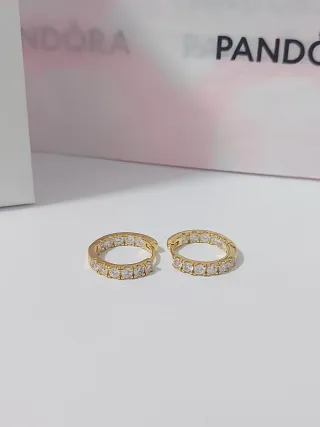 Preciosos pendientes de la marca Pandora, a estrenar. - Diseño elegante en tono dorado. - Incluye caja y paño de limpieza.