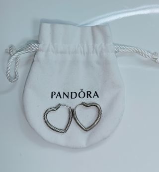 Pendientes de aro con forma de corazón de Pandora. - Diseño moderno y elegante. - Fabricados en plata. Están nuevos sin estrenar, se los regalé a mi hija pero no los quiere y perdí el ticket