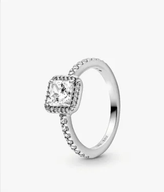 Conjunto de anillo y pendientes a juego, de la marca PANDORA, en perfecto estado. Diseño en plata de 1⁰ ley con circonitas cúbicas. Talla del anillo: 48 (15,3 mm)