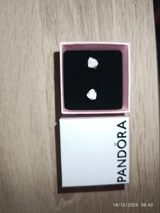 Preciosos pendientes de la marca Pandora, con un diseño de corazón. Nunca usados, estado perfecto. No incluyen caja. - Fabricados en plata de ley 925. - Detalle en color blanco.