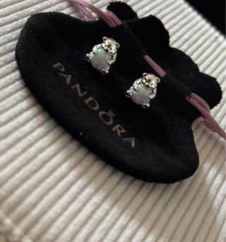 2 x 1 Adorable par de pendientes de oso de Pandora. - Diseño con incrustaciones de opalina. - Elaborados en plata. - Incluye bolsa de terciopelo Pandora.