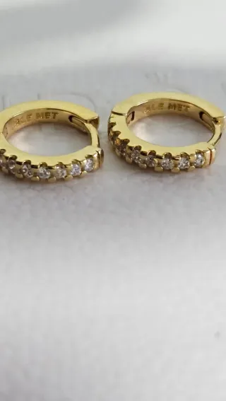 Elegantes pendientes de aro con un diseño adornado con circonitas. Un toque de brillo para cualquier ocasión. - Diseño de aro. - Detalle de circonitas brillantes.