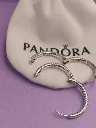 Elegantes pendientes de aro de la marca Pandora. -Viene con su bolsa original - Diseño con escamas. - Acabado plateado.