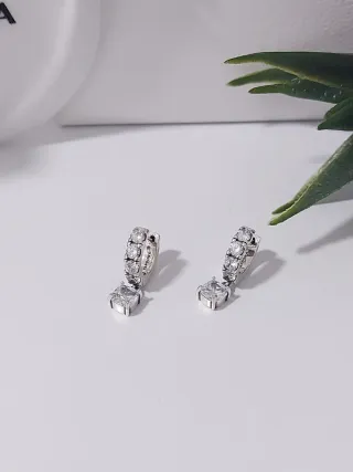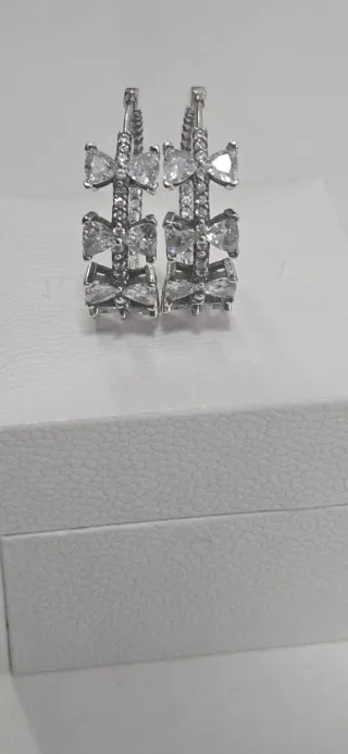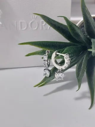 Elegantes pendientes de la marca Pandora. - Diseño con circonitas brillantes. - Cierre de presión. - Estilo colgante con detalle de piedra. Plata de ley S925 No doy caja