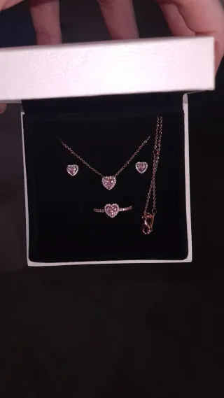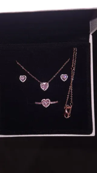 Conjunto corazón oro rosa de Pandora Juego de 2 piezas: collar y pendientes SIN ANILLO Caja de Pandora incluida. Tiene todos los logos oficiales de Pandora, ALE, MET y el sello de plata S925.