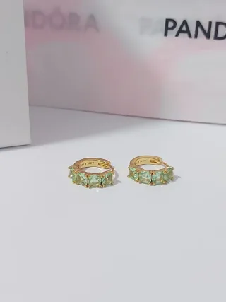 Pendientes Pandora Aro Oro y Piedras Verdes