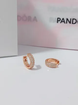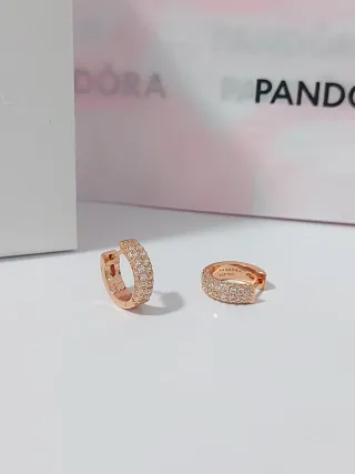 Elegantes pendientes de aro de Pandora, con un diseño de doble fila de circonitas brillantes. El acabado en oro rosa les da un toque muy especial. - Diseño de aro. - Doble fila de circonitas.