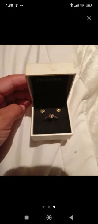 Conjunto de anillo y pendientes a juego de Pandora. - Anillo talla 54. - Pendientes a juego.